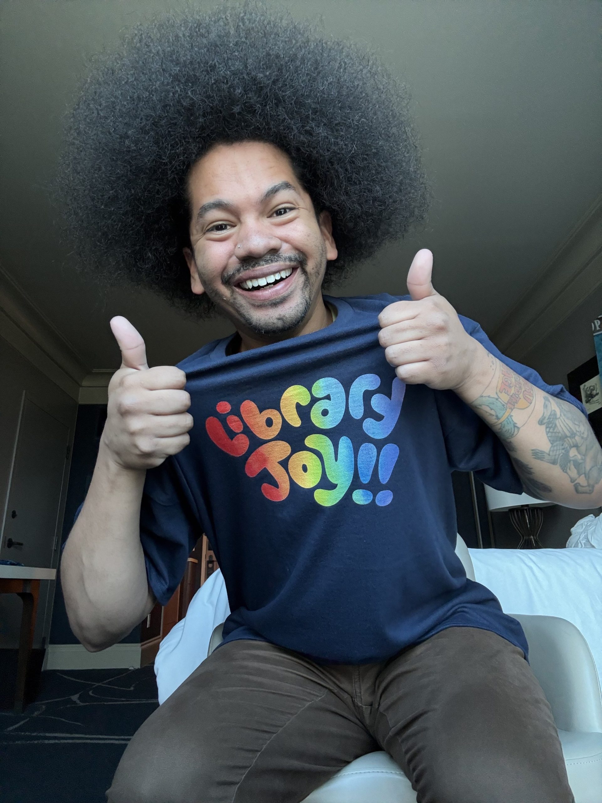 Mychal Threets is a librarian, mental health advocate, and the library’s number one fan (according to himself, admittedly). He grew up in Fairfield, CA, right between Sacramento and San Francisco. He was raised in his local library as a home-school kid. He got his first library card at the age of five and was hooked on libraries from there. He got his first library job as a library shelver at the library he grew up in and worked his way up to become Supervising Librarian of that very same library. He is very open about his mental health. He talks about it in hopes that it’ll help others in their mental health journey. He is adamant about encouraging people to believe him when he says he’s happy they are here. He considers it an honor to the library people who raised him that he is a recipient of the 2024 “I Love My Librarian” award from the American Library Association, one of School Library Journal’s 2024 Movers and Shakers, one of TIME Magazine’s 2024 Next Generation Leaders, a 2025 TIME100 creator, and a 2025 The Webby Awards winner for social impact.